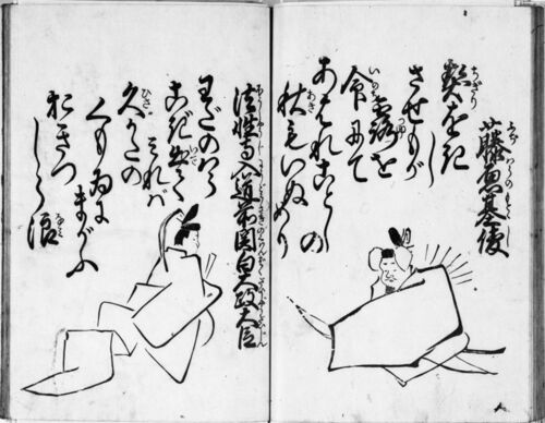 百人一首 | 日本古典籍データセットから。 藤原基俊ふぢはらのもとゝし契ちぎりをきし させもが 露つゆを 命いのちにて あはれことしの 秋あきもいぬめり字母 【契】遠起之 左世毛可 【露】遠 【命】丹天 安者礼古止之乃 【秋】毛以奴女利 法性寺入道前関白…