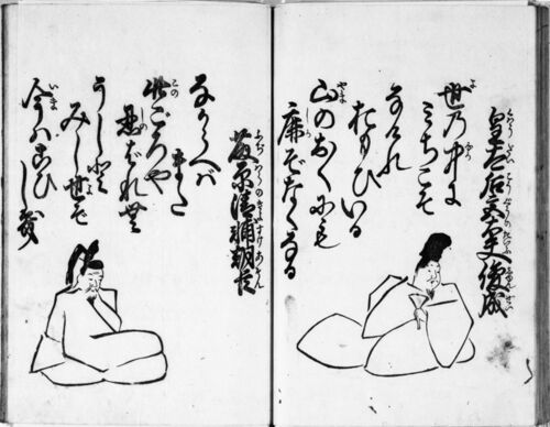 百人一首 | 日本古典籍データセットから。 皇太后宮大夫俊成くはうだいこうぐうのたいふしゆんぜい世よの中なかに みちこそ なけれ おもひいる 山やまのおくにも 𢈘しかぞなくなる字母 【世】乃【中】尓 三知己曽 奈个礼 於毛比以留 【山】乃於久尓毛 【𢈘】…