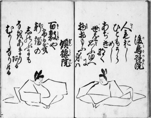 百人一首 | 日本古典籍データセットから。 後鳥羽院ごとばのゐん人ひともおし ひともうら めし あぢきなく 世よを思おもふゆへに 物ものおもふ身みは字母 【人】毛於之 比止毛宇良 女之 安知幾那久 【世】遠【思】不由部尓 【物】於毛不【身】八 順徳院じゆ…